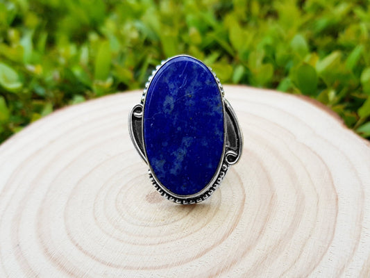 Lapis Lazuli Sterling Silver Ring - Boho Statement Ring, US Size 7.5