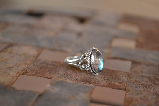 Labradorite Sterling Silver Ring: Minimalist Boho Engagement Jewelry