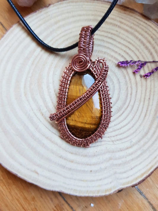 Tiger's Eye Wire Wrapped Pendant, Statement Pendant, Boho Necklace