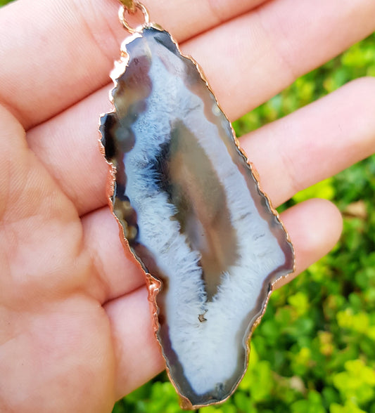 Big Natural Agate Pendant Electroformed Copper Statement Pendant