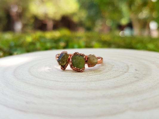 Raw Peridot Electroformed Copper Ring Size US 6 1/4 Statement Ring One Of A Kind Ring