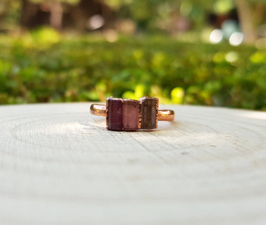 Raw Tourmaline Electroformed Copper Ring Multi Stone Stackable Ring Size US 8 1/4 Multi Stone Stacking Rings One Of A Kind Ring Crystal Ring