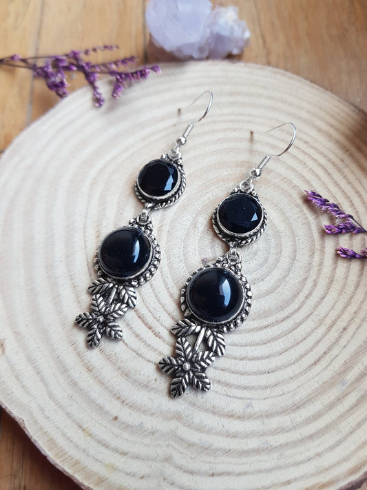 Black Onyx Sterling Silver Dangle Earrings, Unique Statement Jewelry