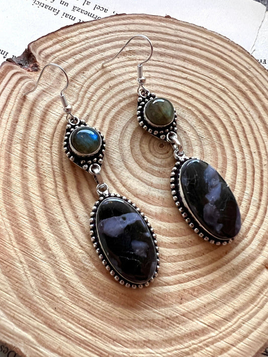 Natural Labradorite And Pietersite Earrings In Sterling Silver One Of A Kind Earrings