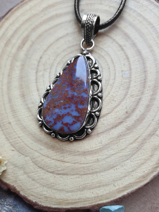 Fruit Jasper Sterling Silver Pendant Necklace, Boho Gemstone Jewelry