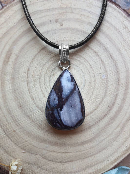 Picture Jasper Sterling Silver Teardrop Pendant, Boho Necklace